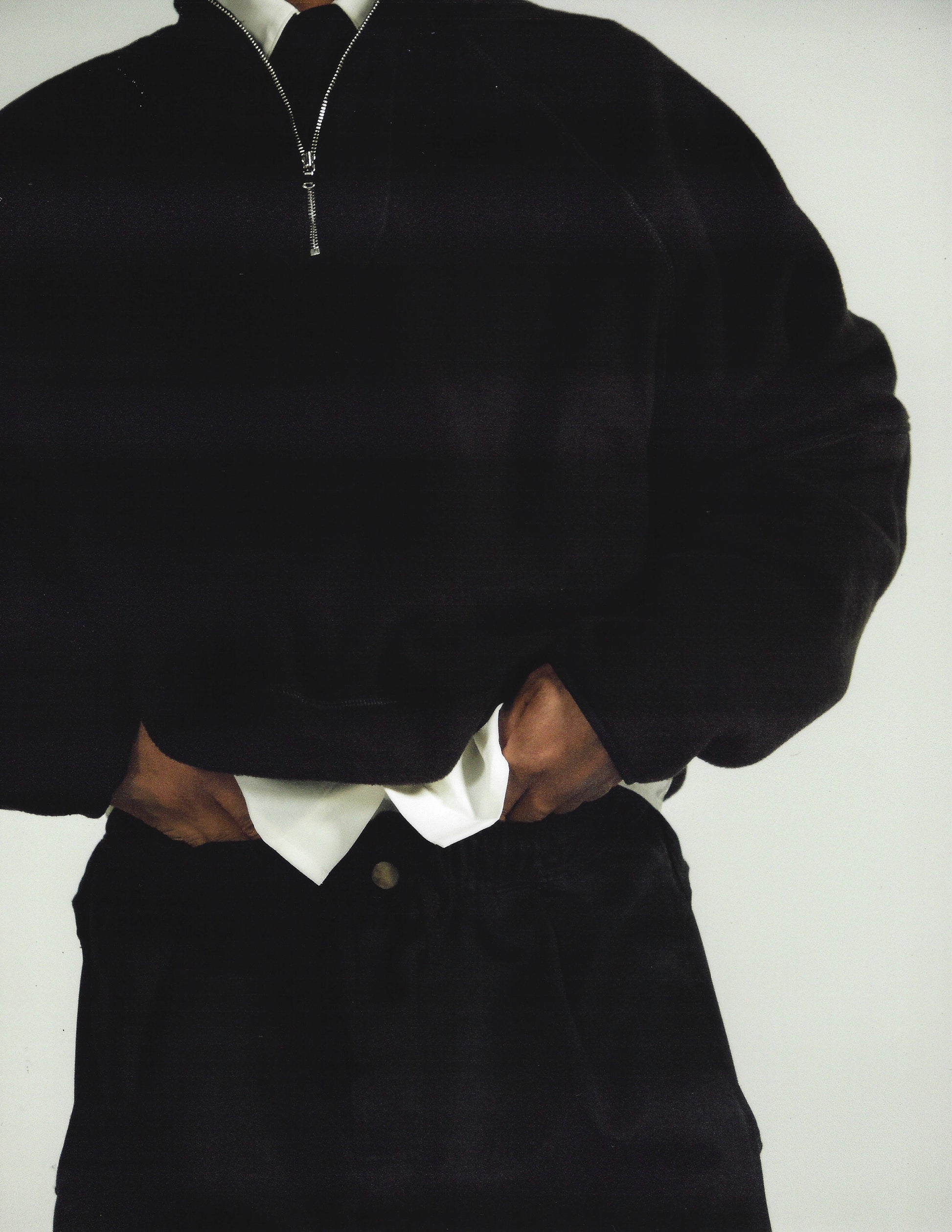 Boxy, oversized cropped quarter-zip crafted from soft double-knit fleece, offering a perfect balance of warmth and lightweight comfort. Finished with a polished silver YKK zipper.