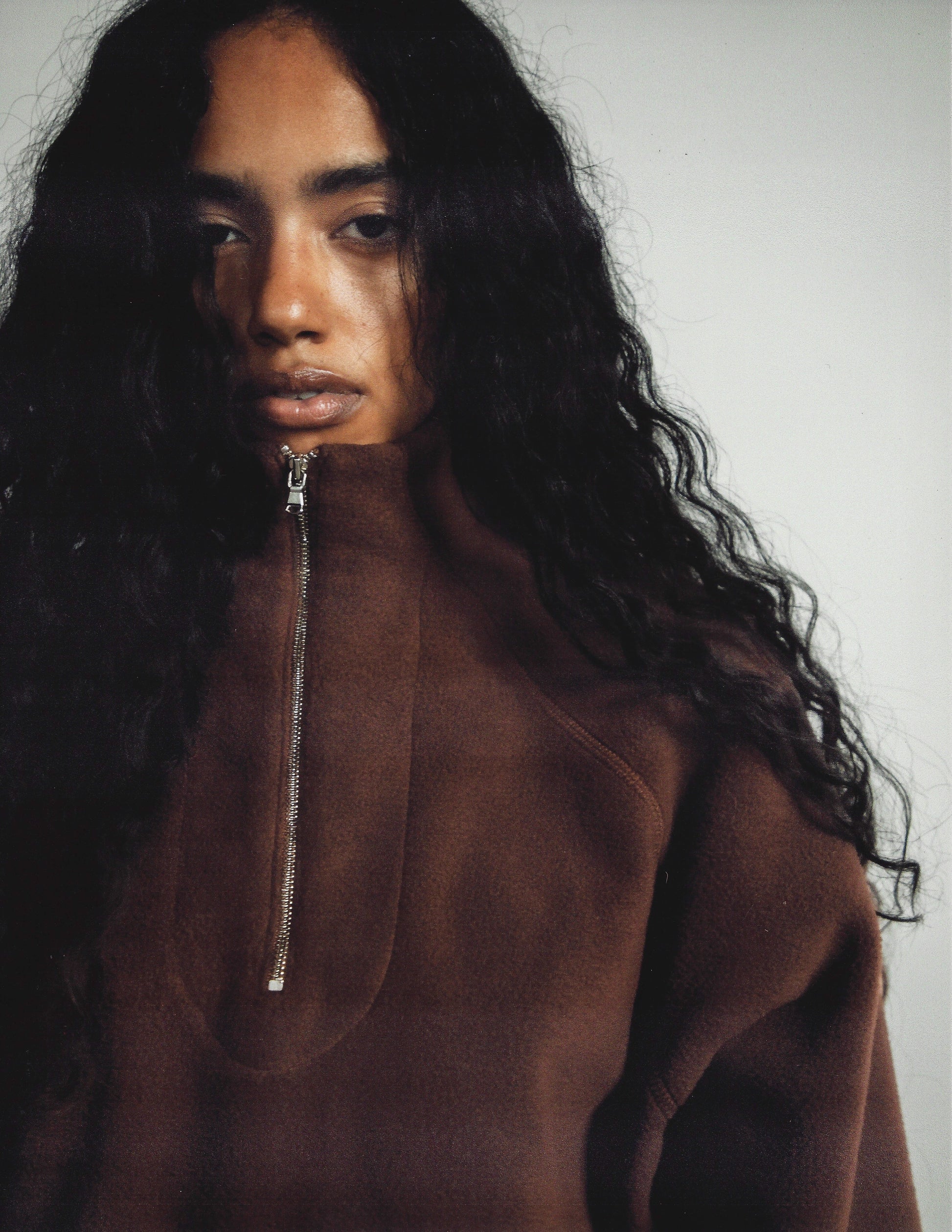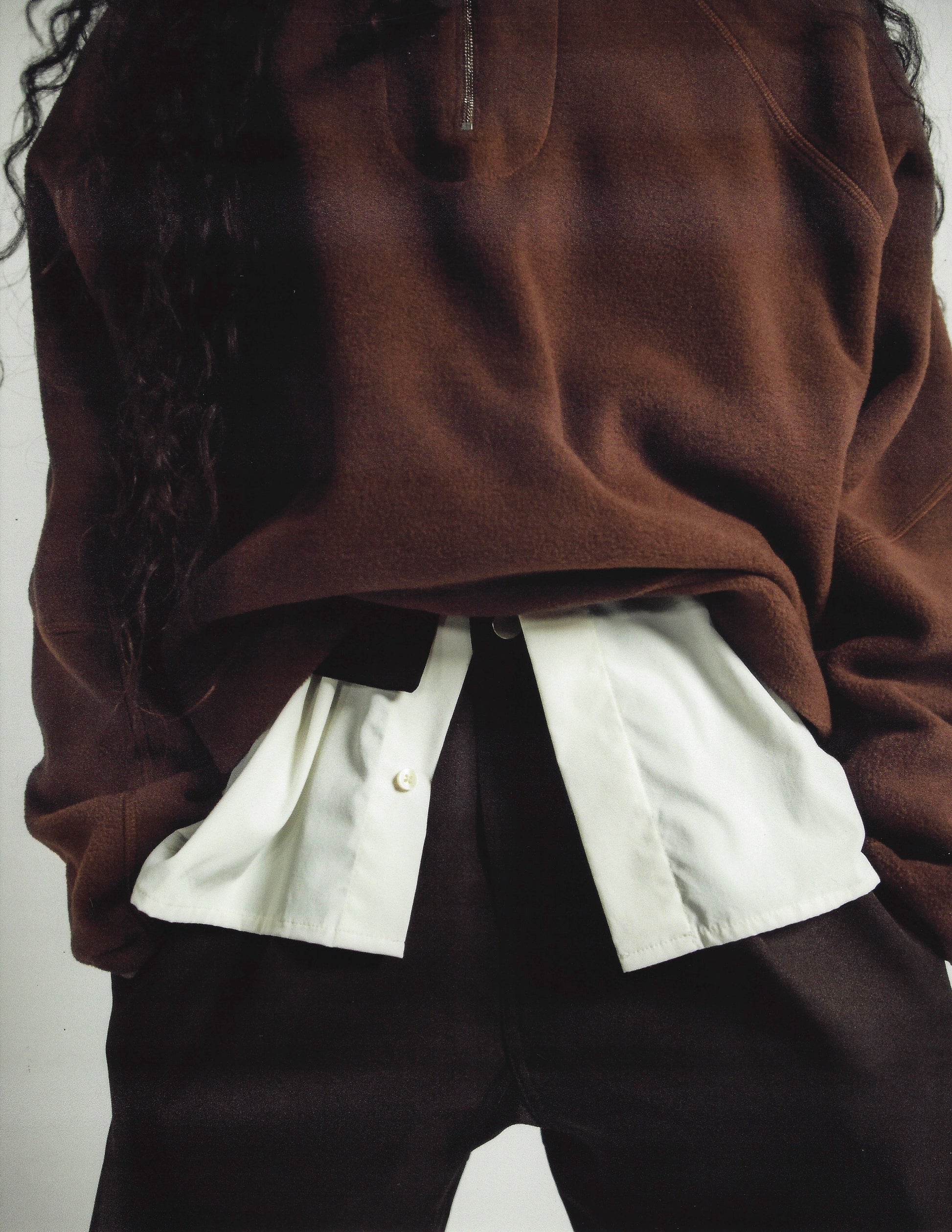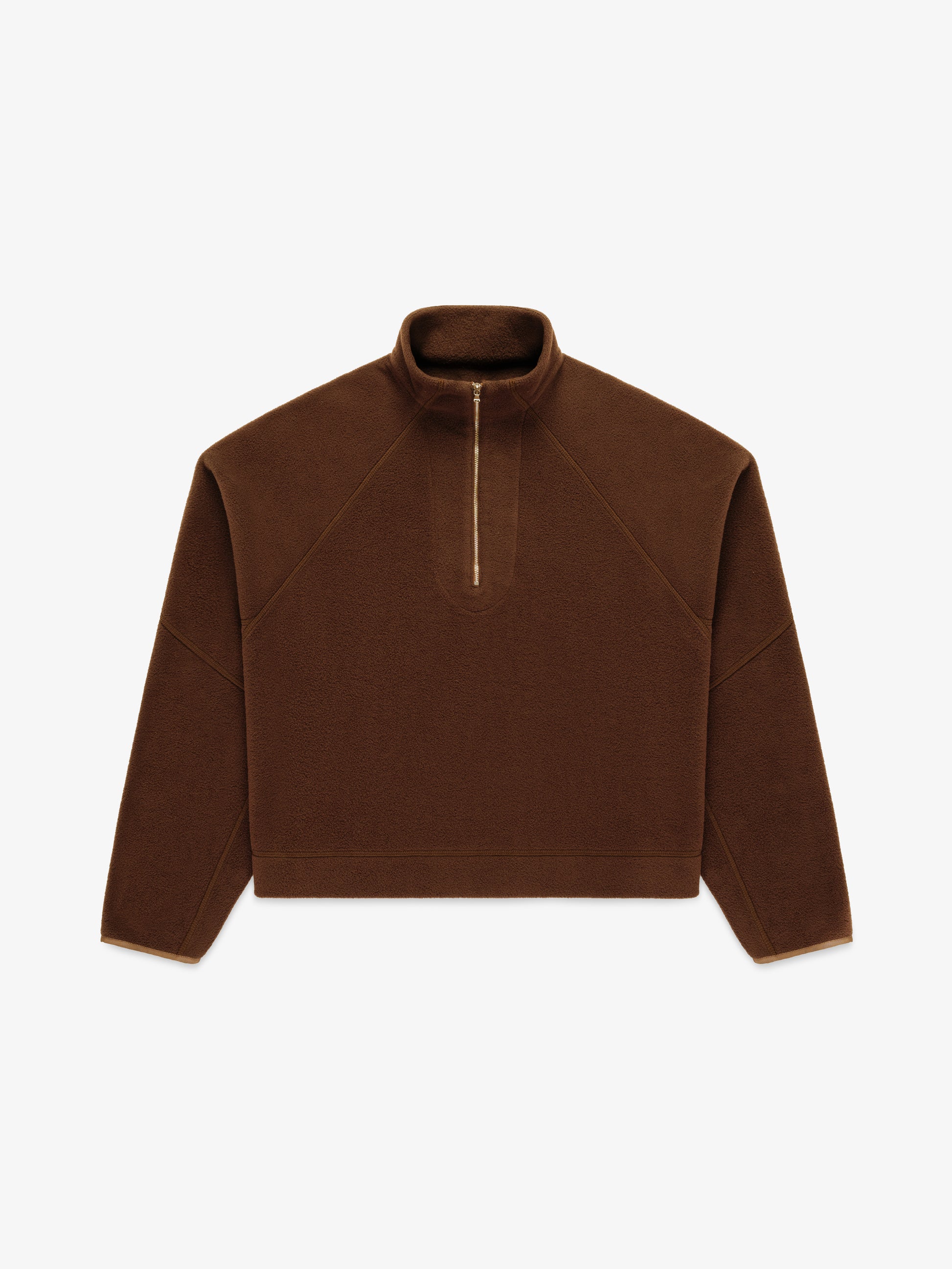 Boxy, oversized cropped quarter-zip crafted from soft double-knit fleece, offering a perfect balance of warmth and lightweight comfort. Finished with a polished silver YKK zipper.